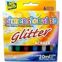 Relevo Acrilex Dimensional 3D Glitter 6 cores 20 ml Papelaria e Escritório/Tinta para Artesanato - Desenho |